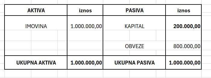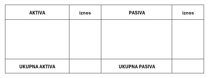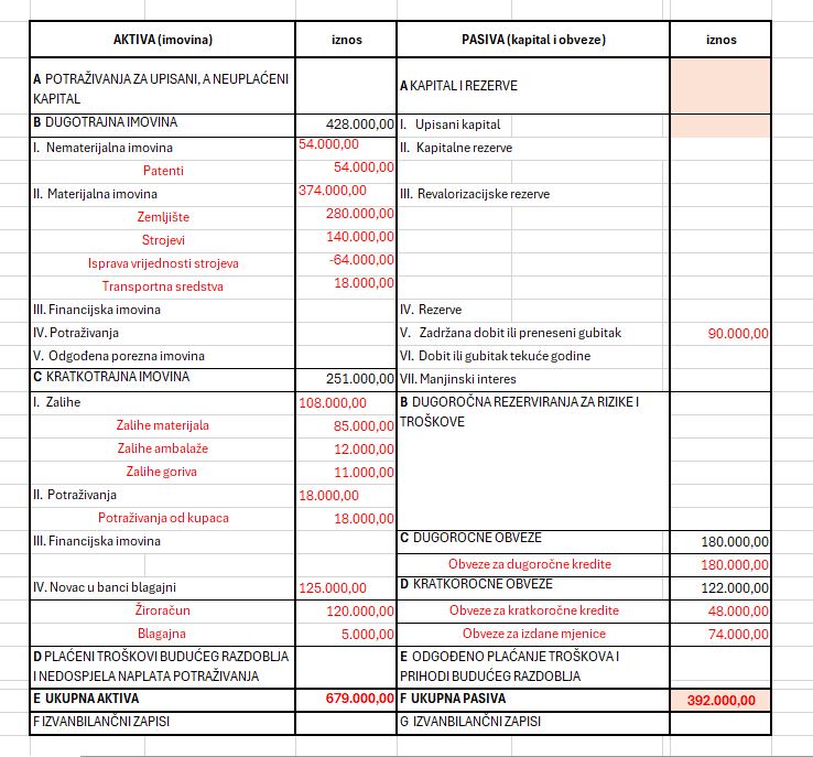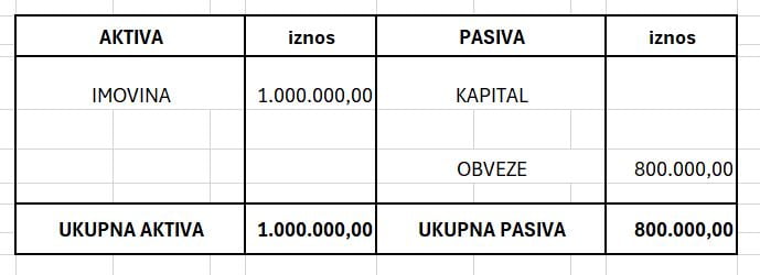 Primjećuješ da ukupna aktiva i pasiva nisu jednake, a moraju biti.