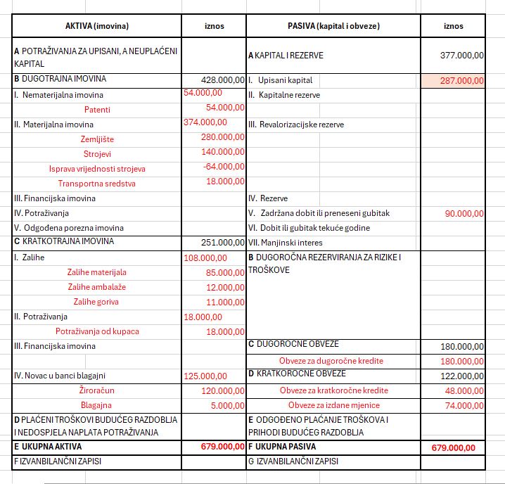 Na osnovu već usvojenog zadane stavke razvrstavamo u Aktivu i Pasivu bilance.