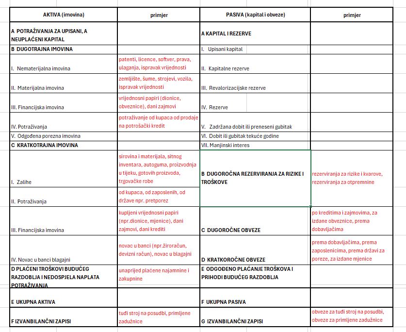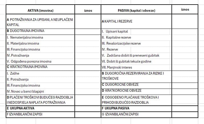 Poznavanje strukture bilance je preduvjet za dobru raspodjelu zadanih stavki i konačno sastavljanje.