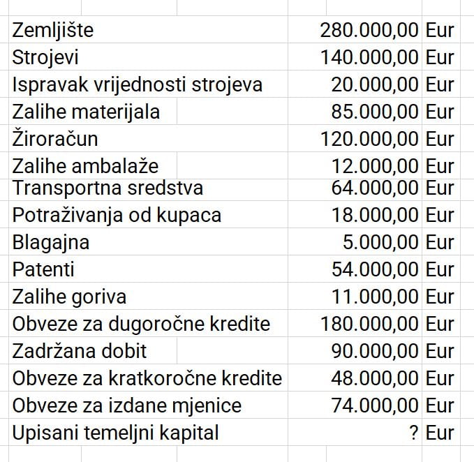 Upišeš dobiveni podatak za kapital, ispraviš ukupnu pasivu i zadatak je riješen.